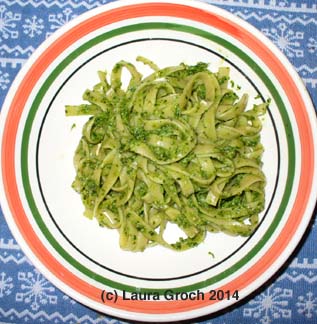 Nothing says green like a pesto sauce! The brilliant emerald color comes from cilantro leaves instead of basil. (Photos by Laura Groch 2014)